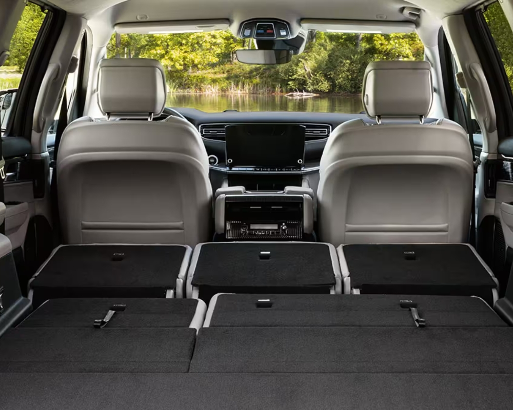 Step inside the cabin of the 2024 Wagoneer, and you'll find a spacious and luxurious interior. This three-row SUV can comfortably accommodate up to eight passengers, although opting for second-row captain's chairs reduces seating to seven. The rich cabin design features premium leather upholstery, 12-way power-adjustable front seats, ambient interior lighting, and three-zone automatic climate control. Whether you're embarking on a long road trip or running daily errands, the Wagoneer ensures that everyone on board travels in comfort.